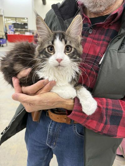 MaineVu Maine Coons. Female Black Smoke & White Kitten-Tentatively Reserved.