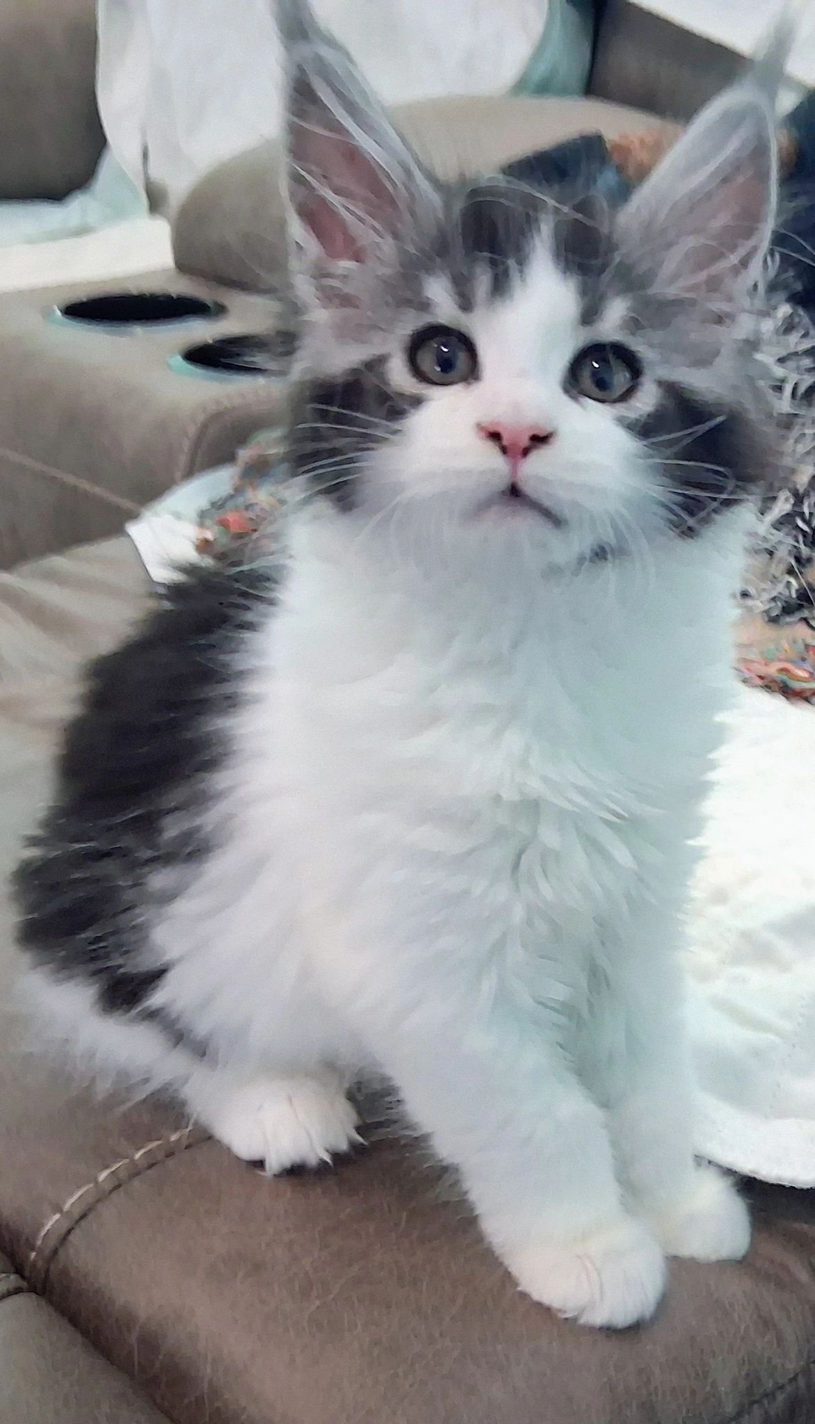 MaineVu Maine Coons. A Black Silver & white Female Kitten Available.